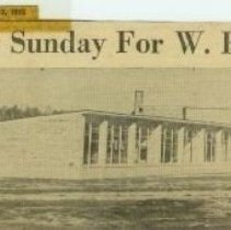 Newspaper clipping of West Bloomfield High School dedication. Photo shows school only. Dated Thursday October 13, 1955. Dedication was Sunday October 16, 1955. Newspaper source not listed. |
